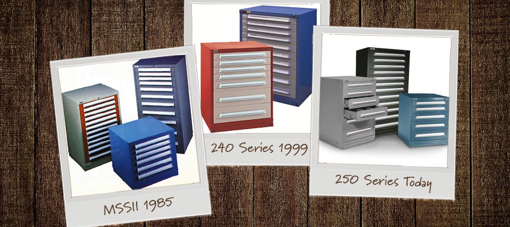 In March of 2007 these cabinets went through another round of design, development, and testing. The new 250 MDC featured improved drawer operation along with the only true “single drawer access” latching mechanism. Also available now was the 251 MDC. This modular drawer cabinet provided a cost-effective alternative option for “multiple drawer access.” The full-load drawer operation also improved to a minimum of 6,000 cycles. Medium wide cabinets were now also available. Popularity for mobility increased. Preconfigured mobile workstations and mobile cabinets now included handles and casters. Hardwood tops easily changed these cabinets into a workshop on wheels!
