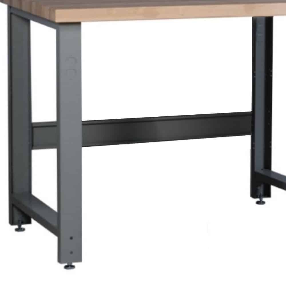 We make the 251STRWB leg-to-leg stringer from heavy-duty steel. These workbench stringers work with both open and closed panel legs. They are designed for workbenches where a drawer cabinet isn’t part of the layout. When choosing a size, match the stringer width to the width of the work surface. The leg-to-leg stringer is a formed steel channel that attaches directly to the panel legs.