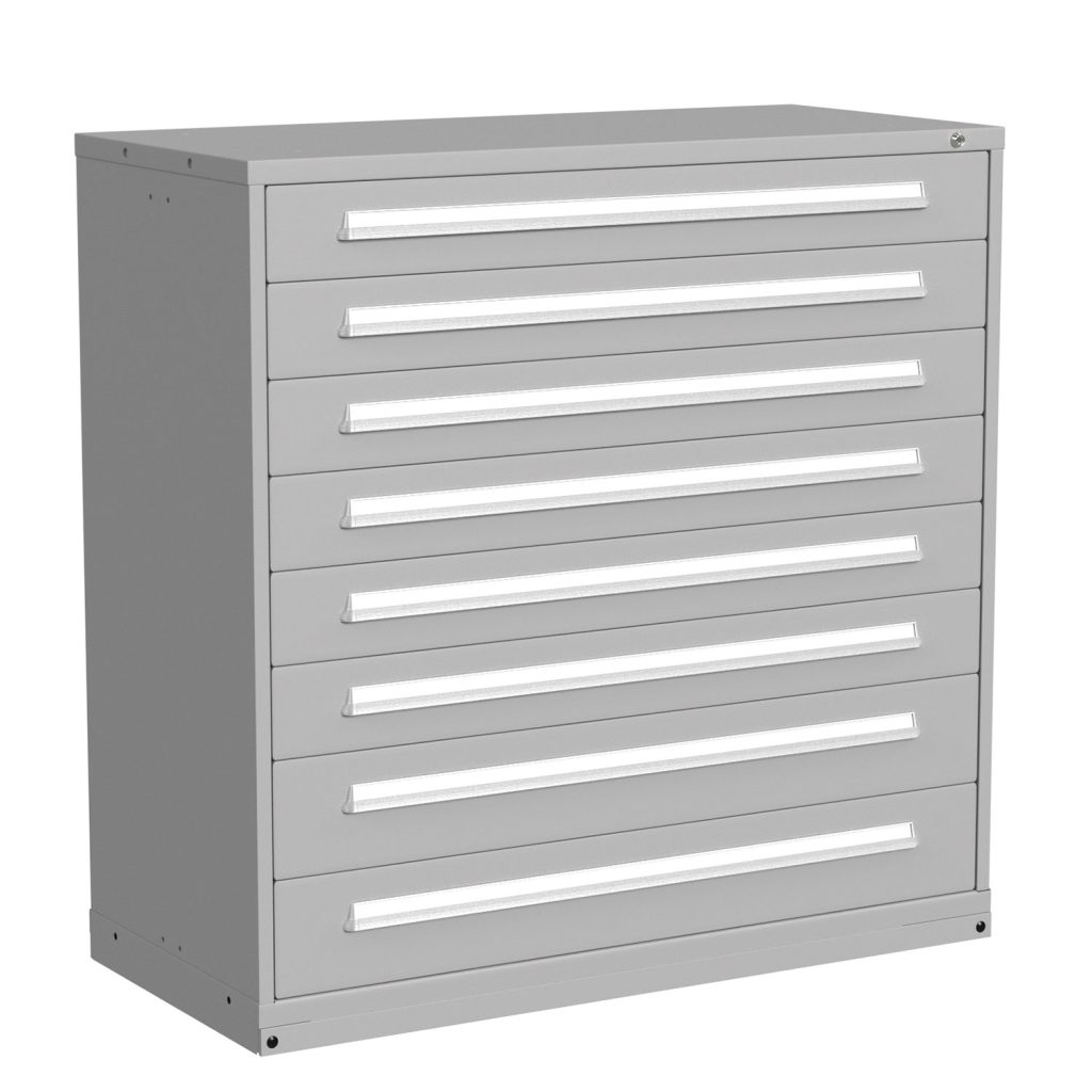 You can choose both a cabinet color and a drawer color for your 8 drawer cabinet. Our durable powder coat paint finish will help protect your cabinets from harsh use. Lyon proudly makes these modular storage cabinets in the USA.