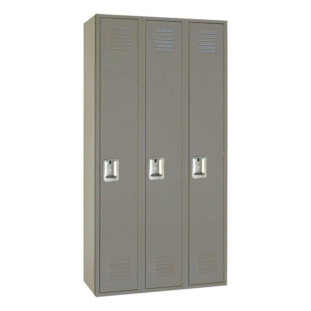 PDQ Corridor Single Tier Locker – 3 Wide – 12″w x 12″d x 72″h – Assembled – Stone Gray