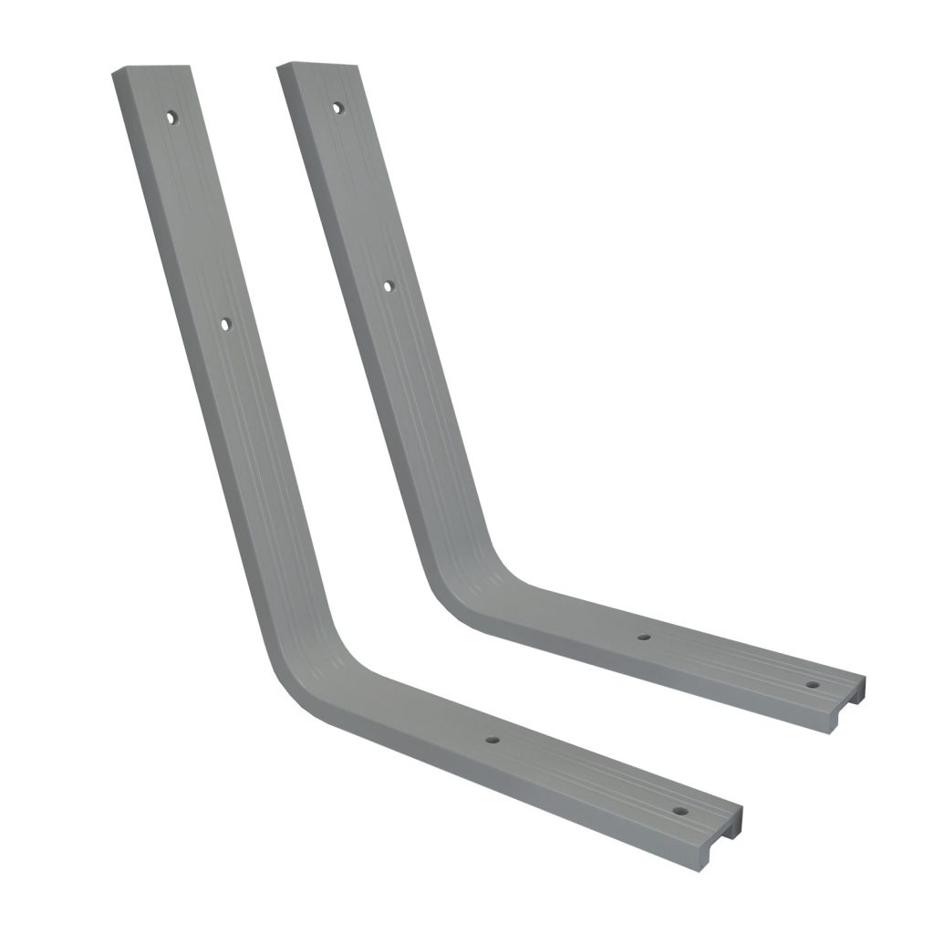 Each bracket features an L-shaped profile, engineered to bolt securely to both the underside of the ADA Locker Room Bench Top and the rear face of the Hardwood Back. This design ensures a stable and long-lasting connection.
