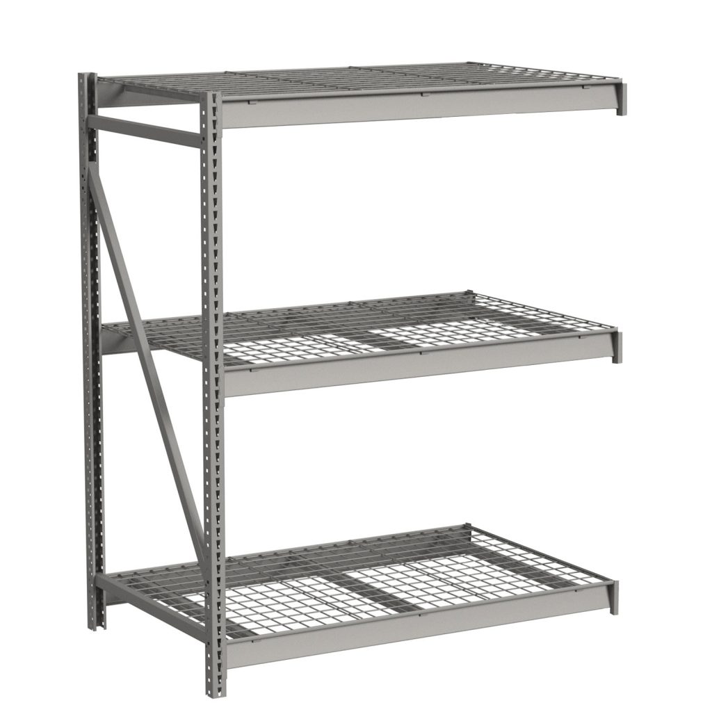 Lyon’s bulk storage rack add-on with galvanized wire decking is ideal for the hand-loading of intermediate weight bulky items. You can use this heavy-duty rack shelf in any number of storage applications. In addition to storing merchandise in shipping and receiving departments, stores can use these industrial metal racks in retail locations for display as well as for back stock. Hospitals can also use this heavy-duty steel storage rack to hold medical supplies and much more. We offer these steel Storage Racks with a durable powder coat finish available in Dove Gray. The powder coat paint finish will help protect your bulk rack shelving from everyday use.