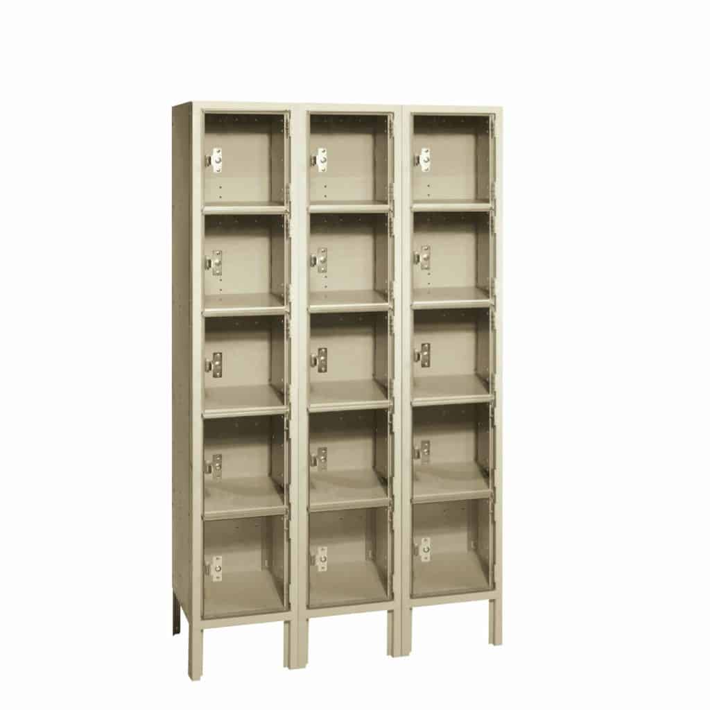 Lyon has long been America’s leading manufacturer of quality Steel Lockers. You can find Lyon’s ClearSight five tier lockers in schools and businesses all over the USA. Multitier lockers such as our five tier locker are great for when you need lots of doors in a smaller space. This includes offices, libraries, government buildings, and gyms. Use this 15 door locker alone or combine it with more lockers to create a full locker system. We proudly manufacture this locker in the USA. We offer these lockers with a durable powder coat finish available in either Dove Gray or Putty.