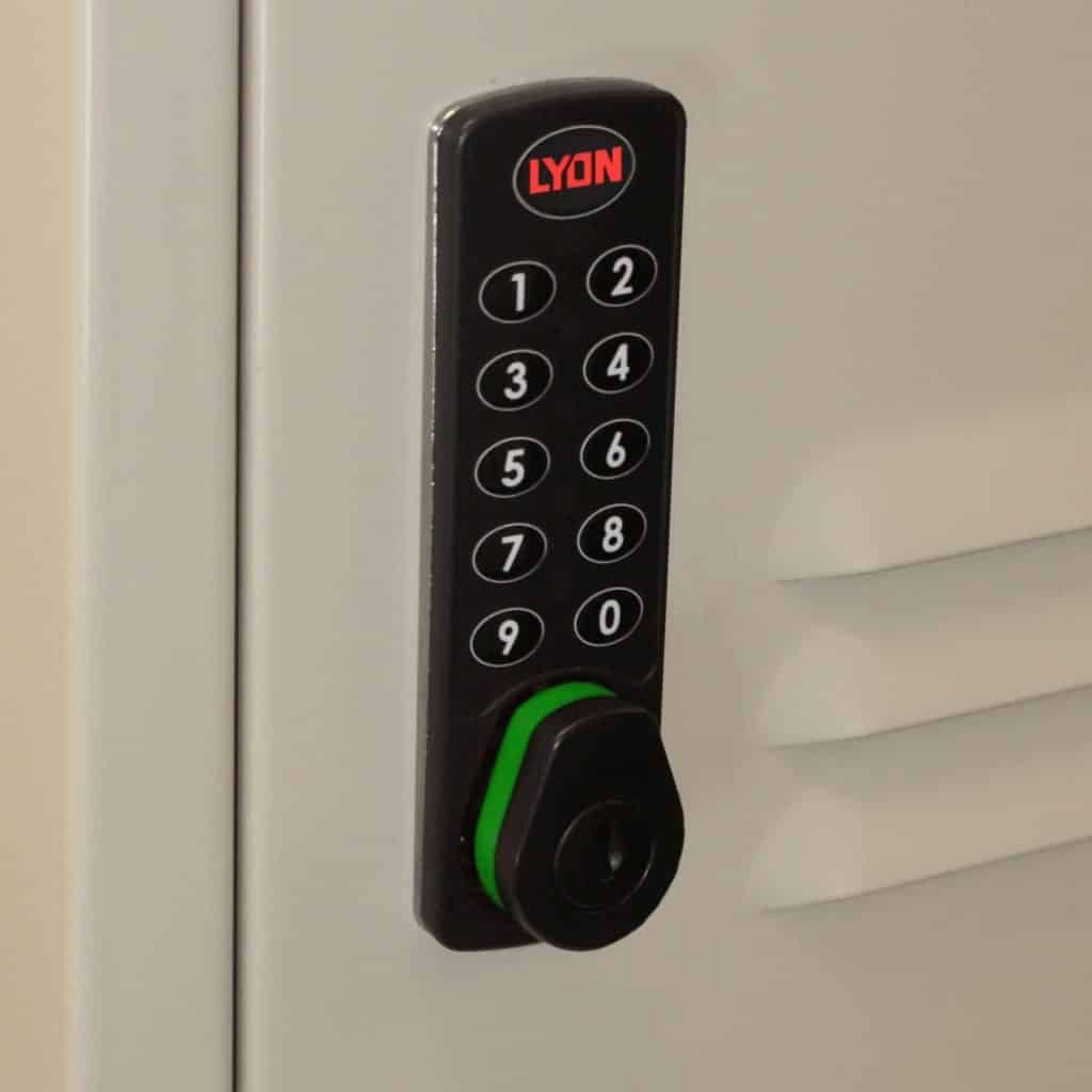 A user provides their own 4 digit code to secure their items. Once they re-enter the code to unlock the digital door locker and retrieve their belongings, the keyless electronic lock automatically re-sets for the next user. Each lock uses 2 AA batteries. The unique mechanical override key permits managerial access in the event of an emergency and an impressive range of custom colors to complement any environment.