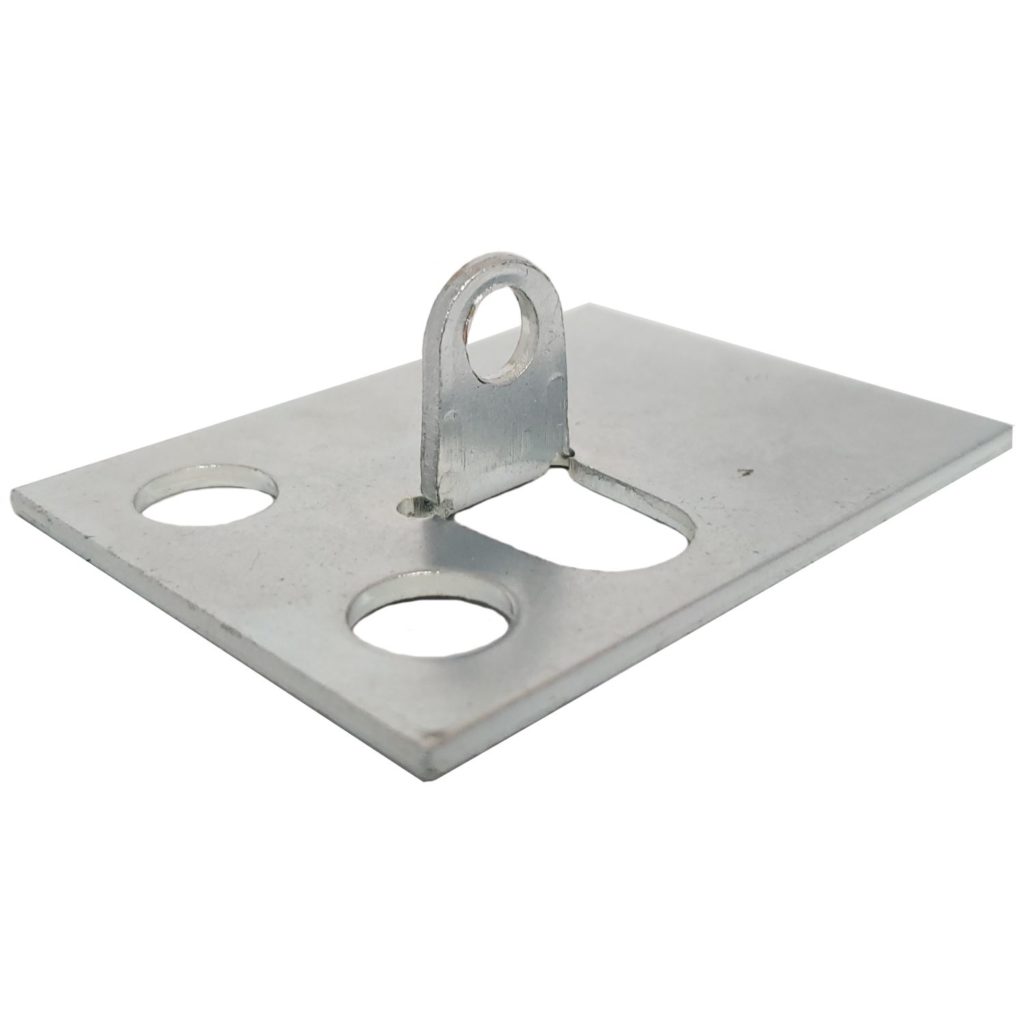 Lyon makes the 2000 series metal foot plate from 13-gauge roll formed steel. It comes with a bright zinc plated finish. Each plate measures 2-1/8″w x 2-7/8″d. A vertical mounting flange is on top of the footplate. This flange is punched with a 5/16-inch hole used to bolt the shelving post to the footplate. We also punch the steel plate with 7/16-inch holes to easily accept floor anchors in the correct spot.